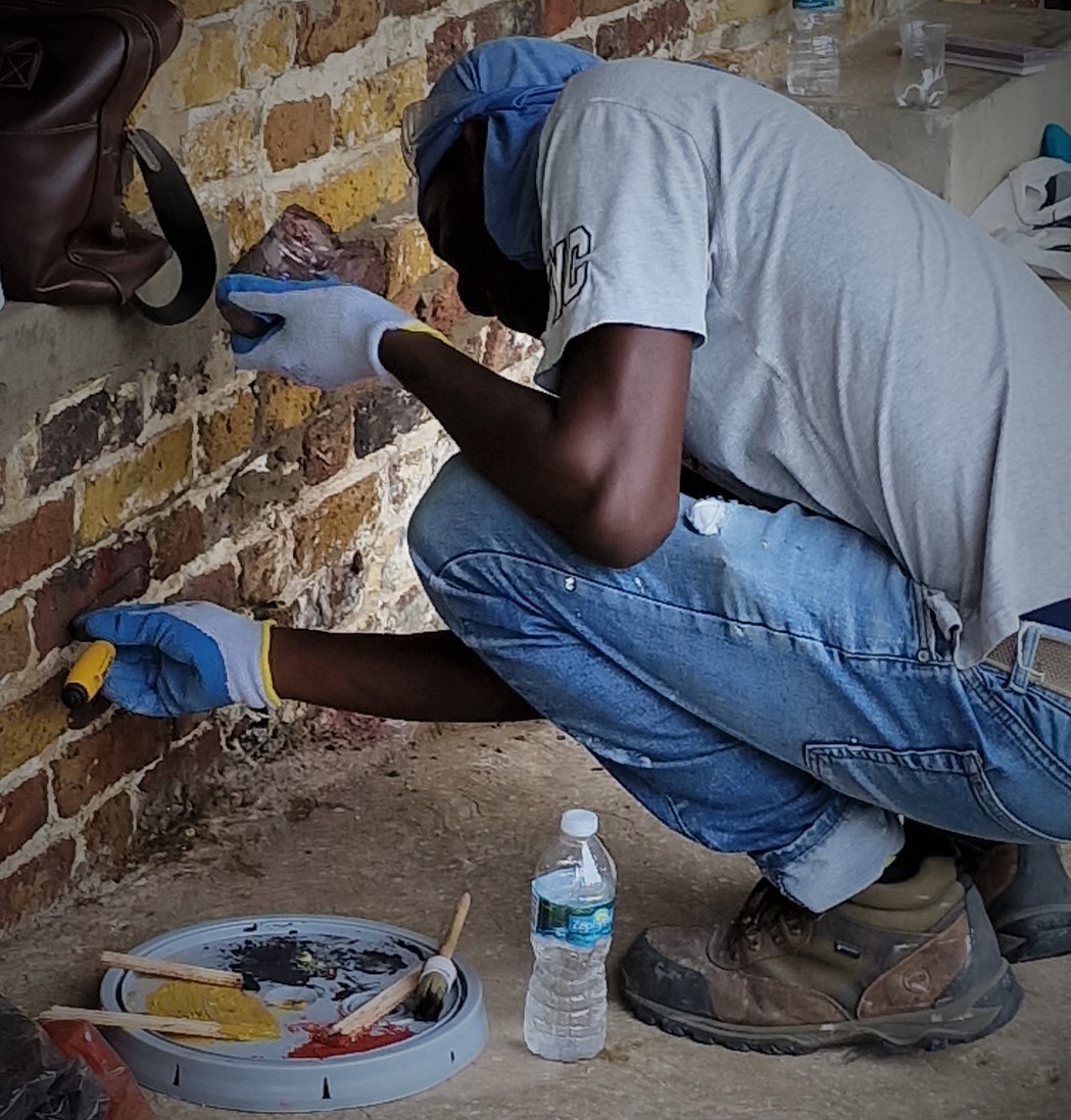 Day three and four, at our heritage skills training workshop, at the Garrison in Bridgetown, were all about plastic stone and brick repair and lime plastering. Tutors and students from the Samuel Jackman Prescod Institute of Technology, the Barbados Vocational Training Board, and the museum maintenance team, worked with Mark Womersley, to carry out plastic stone repair using St Astier St.One ‘Chalk’. This repair mix with excellent vapour permeability and a similar porosity to the stone and brick being repaired was coloured, with iron oxide based mineral pigments.