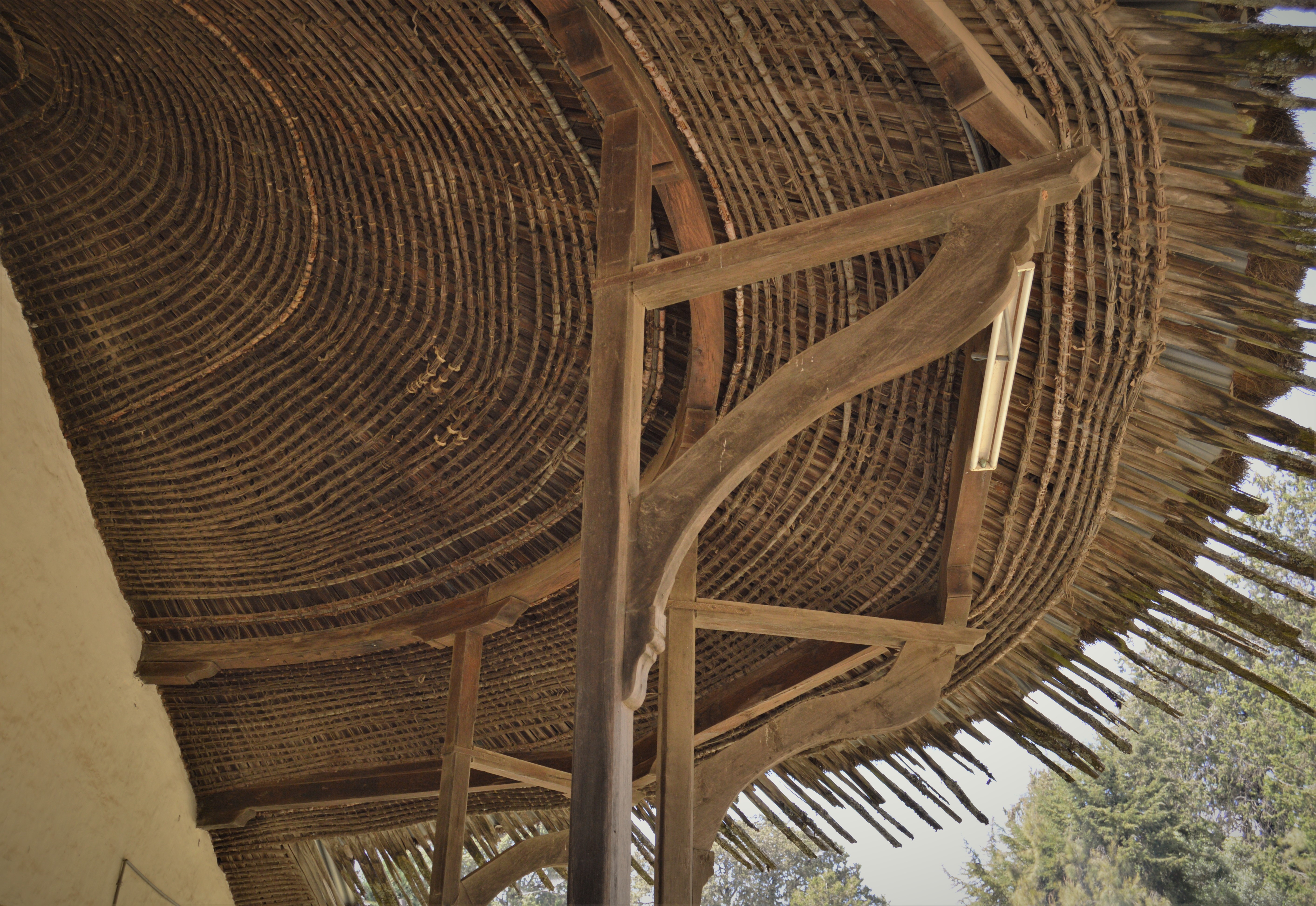 St Marys Church and Emperor Menelik’s former Capital in the Entoto Mountains. The first church and humble palace where built circa 1870, from local earth/clay and straw as cob and daub on timber. Ceilings on the underside of the rafters of split bamboo tied by leather binders with thatch above.