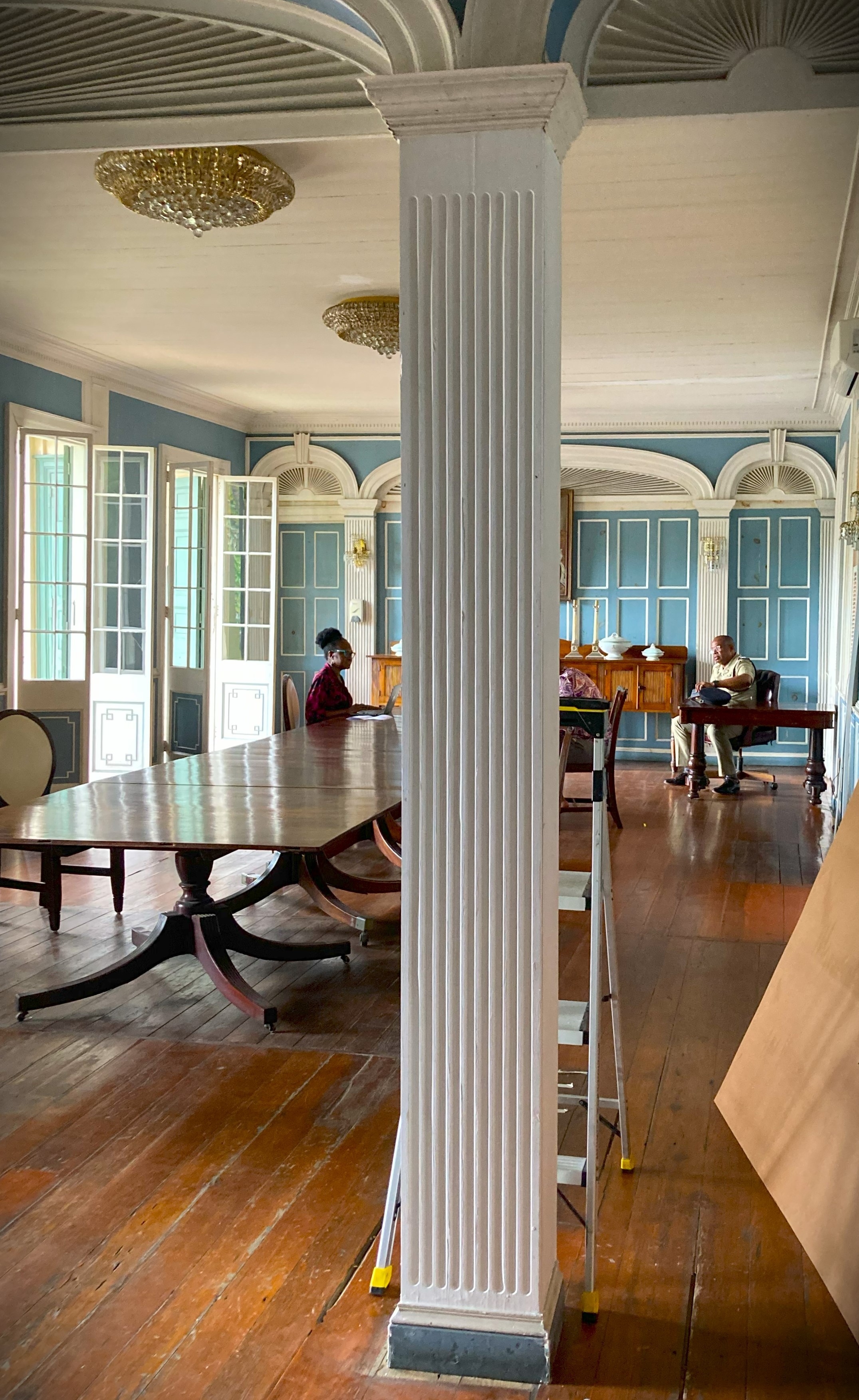 Fluted pilasters and termite damaged structural timber replaced at Government House in Antigua