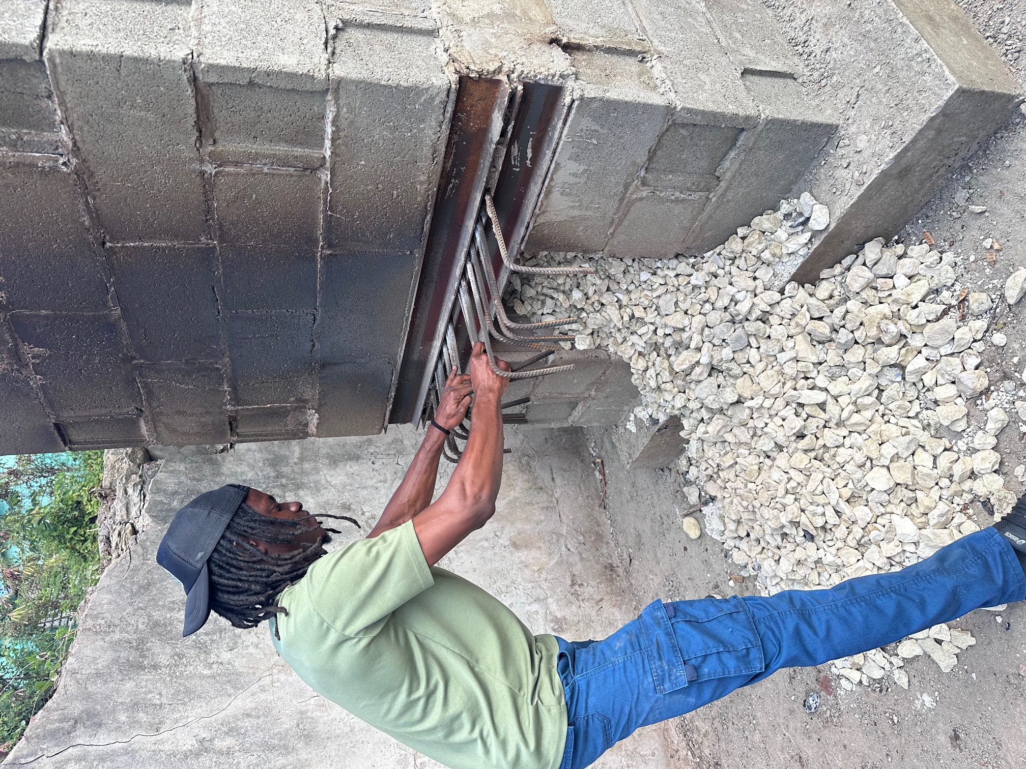 M Womersleys Ltd assisted the Harrison Centre to allow them to construct an active lime kiln in their school grounds. The 1 ½” limestone was sourced from the Burma quarry just southeast of the main Airport on the island. The charcoal and charcoal waste used were sourced from the island and called ‘coal’ and ‘waste’. This follows a tradition of a more remote lime kiln at the west end of ‘Farley Bay’ in Antigua, which sits in an area reclaimed by nature. Nearby, we found piles of coral ready for burning and a charcoal preparation area.