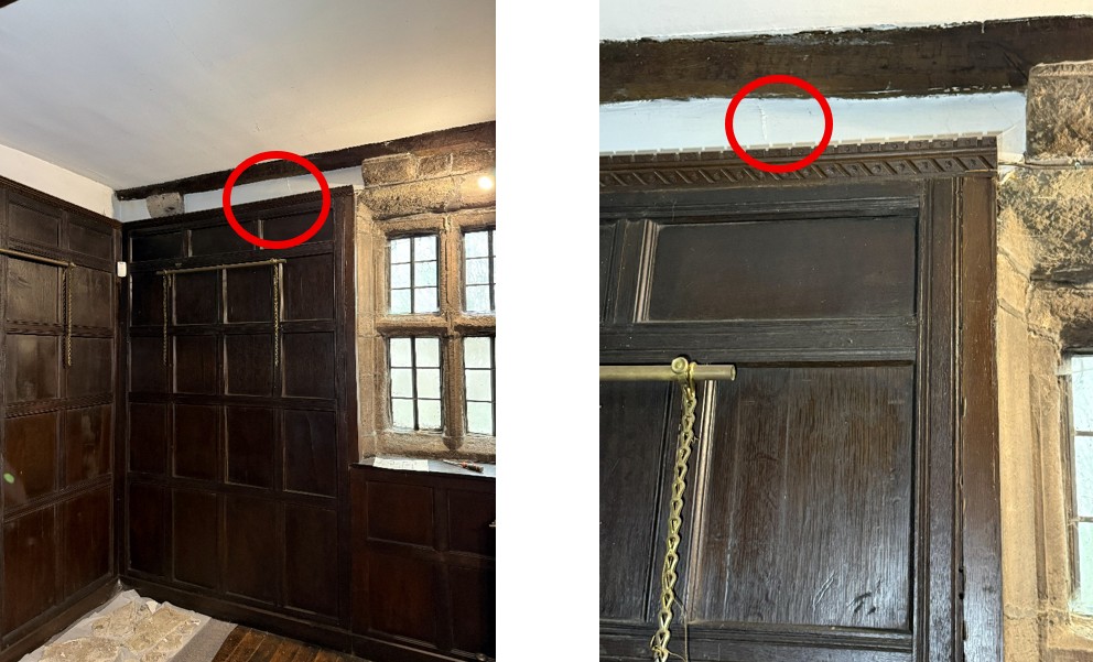 M Womersleys were asked to undertake some paint sampling at Hall i'th Wood Museum. Originally, this building was a much smaller-scale, early 16th-century hall with a screens passage, which is likely to have sat within the current extended great hall, with a northern stone service wing attached. There appears to be no plaster or render from this period remaining (although some mortars from this period are looked at separately in the mortar analysis that was done concurrently with this survey). The property’s north wing was then extended west, and perhaps the western porch was built at this time.